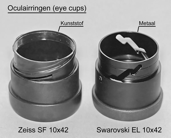 Bij de EL zijn de oculairringen van metaal, maar bij de SF en de FL zijn ze van kunststof wat een iets minder degelijke indruk maakt.