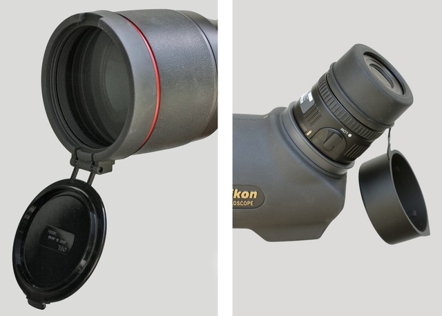 Zowel objectief als oculair zijn voorzien van afneembare beschermkappen. Het oculairkapje is met een dun rubberstripje bevestigd.