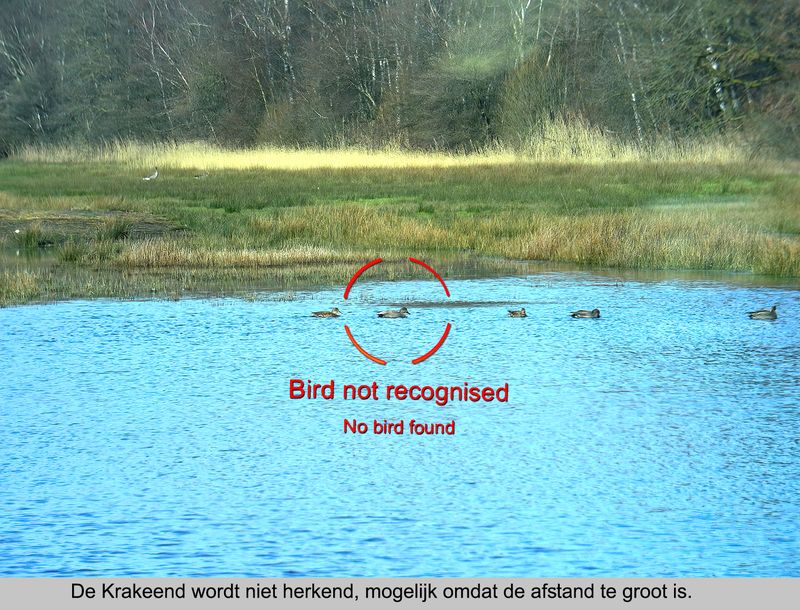 Recht van voren of van achteren is determinatie vaak niet mogelijk. Je krijgt dan de melding “Bird not recognised”.