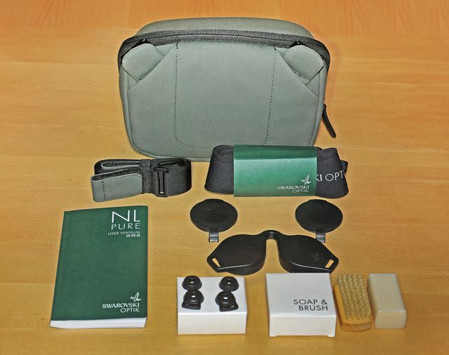 Bij de kijker worden geleverd een draagtas met draagriem, een stevige brede draagriem voor de kijker, beschermkapjes voor oculairs en objectieven, een stel ringen voor de riembevestiging en een gebruiksaanwijzing met garantiekaart. De garantietermijn bedraagt 10 jaar. Ook wordt nog een stukje zeep en een borsteltje meegeleverd. In het verleden bleek dat de groene bekleding van de kijkers wel eens broos wilde worden en stuk scheurde. Volgens Swarovski komt dit door bijvoorbeeld zonnebrandcrèmes, muggenolie, transpiratievocht o.i.d. Daarom verdient het aanbeveling de kijker af en toe te reinigen. Dit kan onder de stromende kraan want de kijkers zijn (druk) waterdicht.