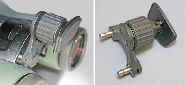 Het “eye-relief” is door zes kleine stapjes van de oculairringen nauwkeurig in te stellen. Deze metalen ringen zijn ook geheel te verwijderen wat het schoonmaken vergemakkelijkt. De “eyecups” zijn ook wat platter dan bij de EL.