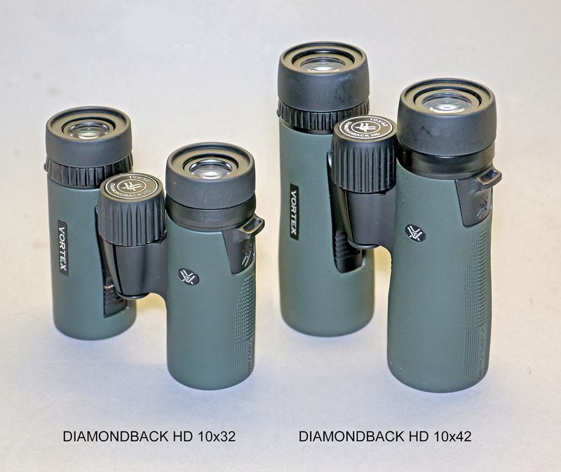 De Diamondback HD 10x42 scoort ongeveer hetzelfde als de HD 10x32, alleen het gezichtsveld is wat kleiner (zie tabel). Maar deze kijker heeft minder last van interne reflectie en de beeldscherpte is nog iets beter wat van belang kan zijn voor waarnemers met een beter dan gemiddelde gezichtsscherpte. De oculairringen hebben één tussenstop. Hij is ook door brildragers te gebruiken.